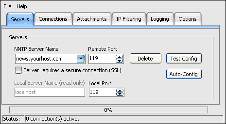 ContentsQuickstartTroubleshooting About Features Requirements Credits and Acknowledgments ManualMain MenuIndicators Servers Tab Connections Tab Attachments Tab IP Filtering Tab Logging Tab Options Tab Registration & Ordering |