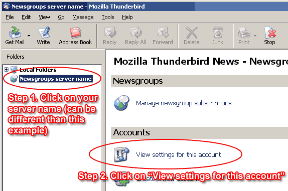 (Configuration part 2 of 2) - Configuring Mozilla Thunderbird to work with yDecodeIf you are using Mozilla Thunderbird instead of Outlook Express first configure yDecode just like described above. Note that Test Config button will not be able to detect if you properly configured Mozilla Thunderbird. However, server connection will be tested successfully. Regardless of inability to check account settings for Mozilla Thunderbird, yDecode will still work with it as well as with any other news reader. |