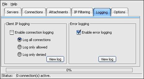 This tab offers a choice of options to log client connections to yDecode and to log errors.
